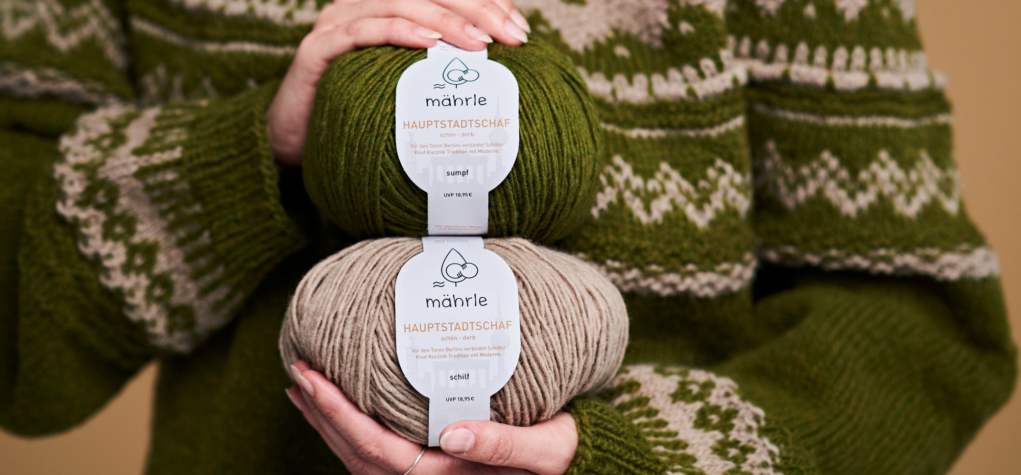 Die Wolle unseres Hauptstadtschafs ist griffig und in der Haptik angenehm. Ihre Griffigkeit und Standfestigkeit eignet sich hervorragend für Zöpfe und Colorwork. Wir haben satte Farben gewählt, um der lebendigen Hauptstadt und dem Farbenreichtum des Berliner Umlands gleichermaßen Rechnung zu tragen. Das Garn hat eine Lauflänge von 180m auf 100g und ist als Dochtgarn gesponnen. Die empfohlene Nadelstärke liegt zwischen 4 bis 5. Das Hauptstadtschaf kann beliebig mit Deich-, Rhön- und Inselschaf kombiniert werden.