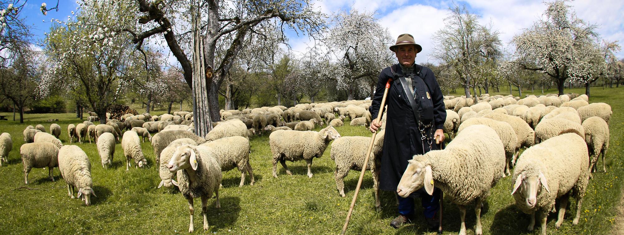 Genauso typisch für diese Gegend wie Flora und Fauna ist auch das Bild des Schäfers mit seiner Herde. Bereits seit Jahrhunderten prägte dieser Beruf das Landschaftsbild der Schwäbischen Alb und hat somit maßgeblich zu ihrem heutigen Bild als Kulturlandschaft beigetragen. Nach wie vor also eine ökologisch enorm wertvolle Berufung, die durch den Preisverfall von Wolle und dem enormen Preisdruck von Lammfleischimporten aus Übersee im Sterben liegt. Viele Schäfer gaben auf oder zogen sich auf auswärtige Weidegebiete zurück.